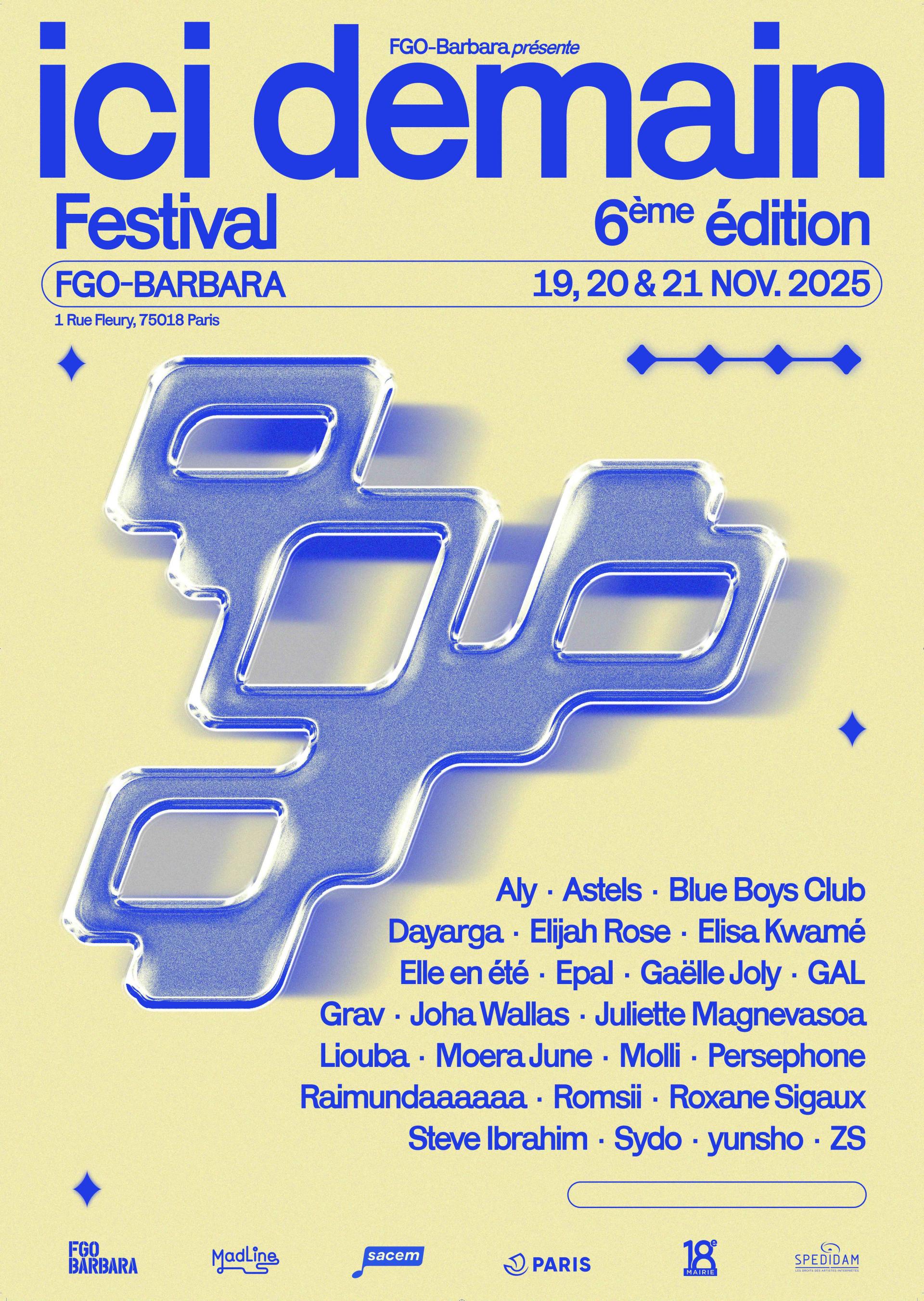 Ici Demain, c’est plus qu’un festival : c’est un manifeste vivant pour la création musicale indépendante. Chaque édition donne à voir ce qui bourdonne, ce qui expérimente, ce qui bouscule. Porté en novembre par FGO-Barbara, le festival défend une idée simple : donner aux artistes en devenir l’espace et l’écoute qu’iels méritent, en les plaçant au cœur d’un écosystème humain, bienveillant et professionnel.