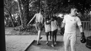 Partant du lien historique entre la musique, les boxeurs et la photographie,FGO-Barbara a réuni 3 de ses partenaires pour une initiation à la boxe synchronisée en musique, sous l’œil avisé d’un photographe, dans le cadre du festival Formes Olympiques été 2022 / Olympiade Culturelle Paris 2024.