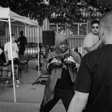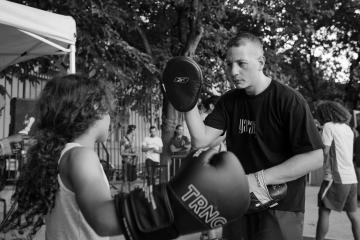 Partant du lien historique entre la musique, les boxeurs et la photographie, FGO-Barbara a réuni trois de ses partenaires* pour une initiation gratuite à la boxe synchronisée en musique (DJ set), sous l’œil avisé d’un photographe.