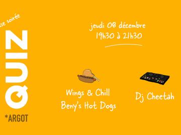 Argot magazine, c'est le média consacré à la jeunesse et à la culture des quartiers populaires. Le Quiz Argot, c'est 32 questions de "street" culture générale (sport, littérature, musique, food, mode, histoire, cinéma...). Les soirées Quiz Argot proposent une façon différente de se retrouver et de s'amuser, à mi-chemin entre les sorties en ville avec les amis et les soirées jeux de société en famille.