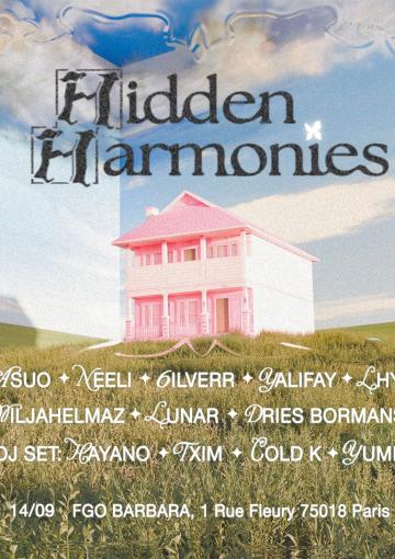 Hidden Harmonies évoque un sentiment d'exploration et de découverte musicale, où les auditeurs sont invités à plonger dans un monde sonore mystérieux et peu exploré. Le festival « Hidden Harmonies » célèbre la liberté musicale et met en lumière des artistes émergent·es et underground.