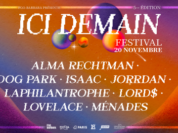 Ici Demain Festival met en avant une nouvelle vague d’artistes aux horizons et aux esthétiques variées qui font la richesse de la jeune création contemporaine. Le tout dans la continuité et en complément de la mission de soutien à la création et à l’émergence de FGO-Barbara porté par le Pôle Création artistique.